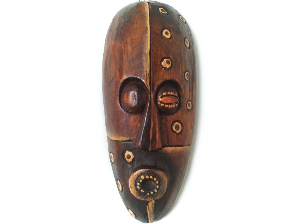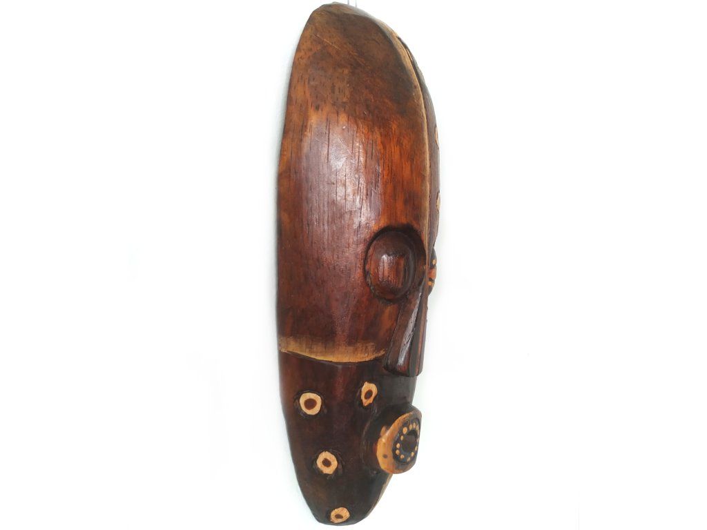 Krásná menší Dřevěná Ručně řezbovaná Maska - dekorace k zavěšení na stěnu / polici.