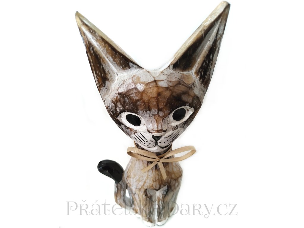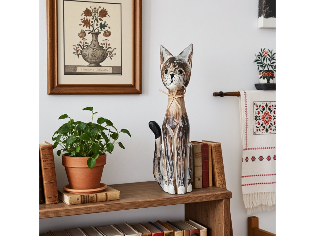 Krásná větší Dřevěná ručně řezbovaná socha Kočka.