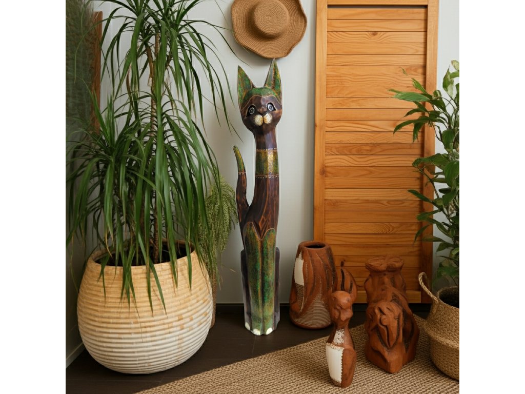 Kočka 15 Socha XL Dřevo 80 cm