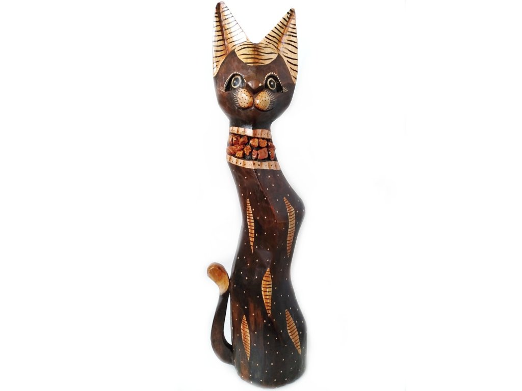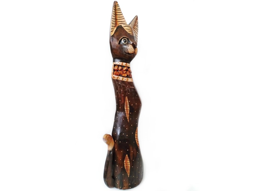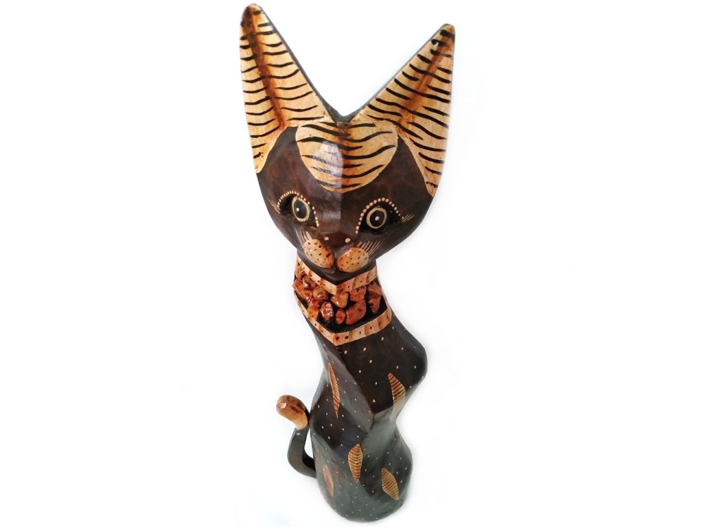 Krásná větší Dřevěná ručně řezbovaná socha Kočka.