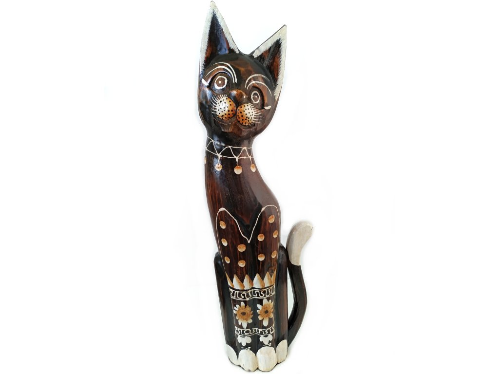 Krásná větší Dřevěná ručně řezbovaná socha Kočka.