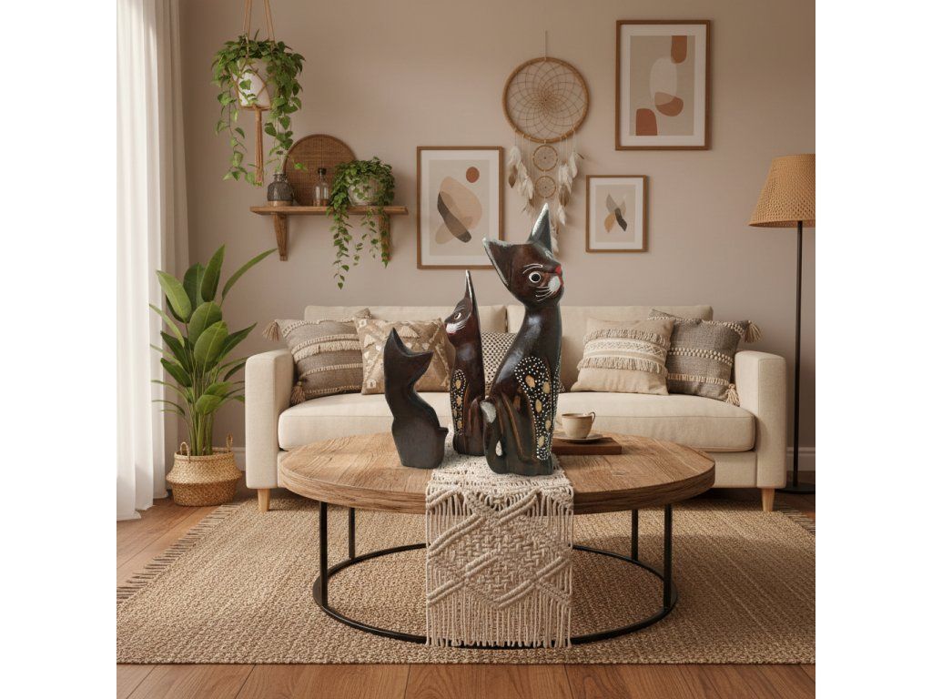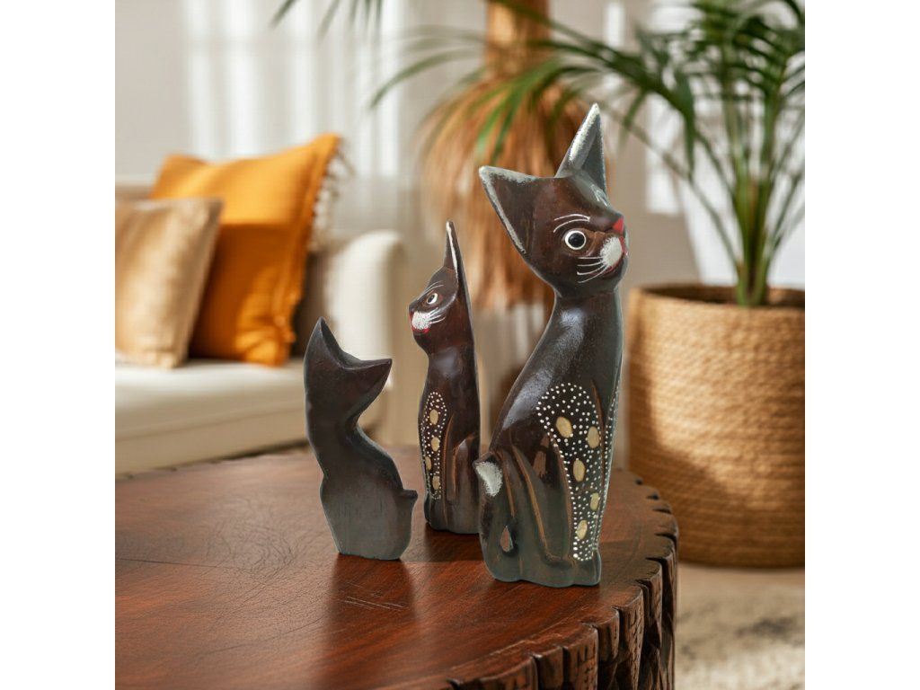 Kočka 3 x Socha Sada 3 Dřevo 25cm