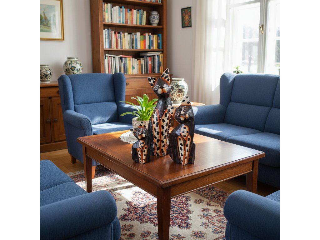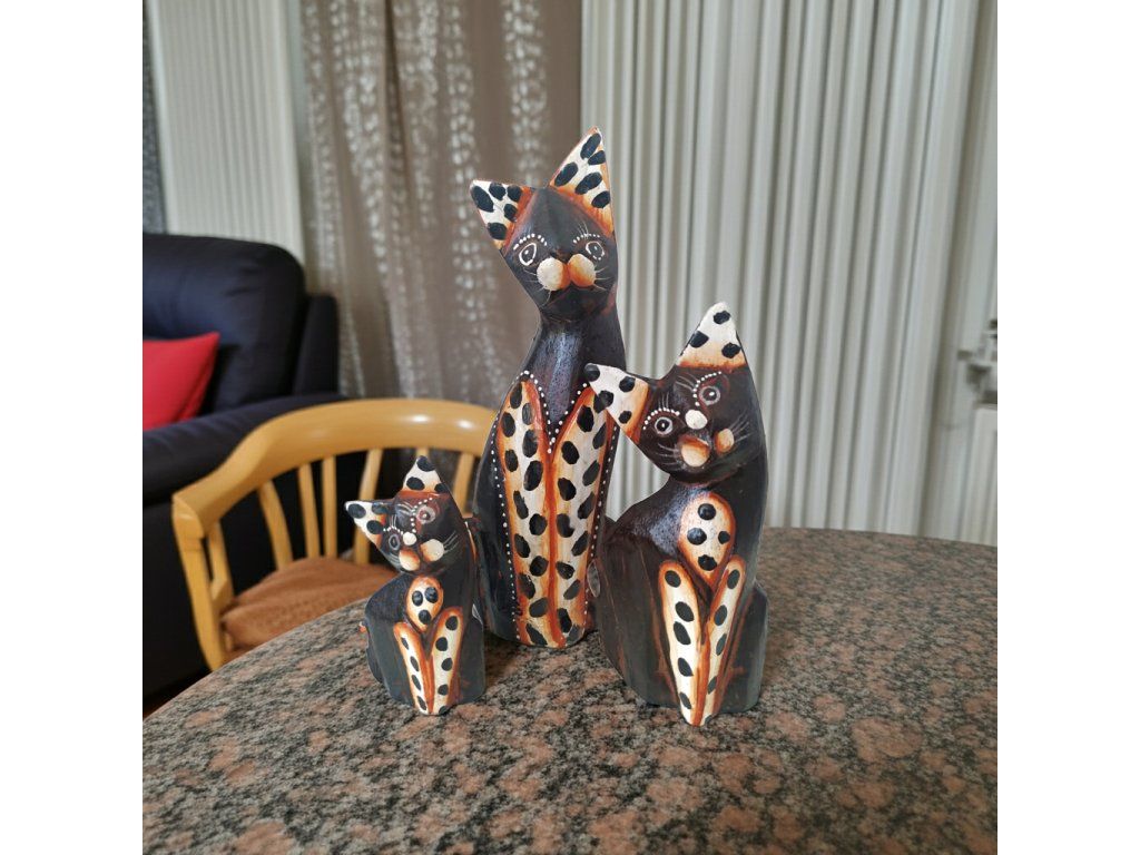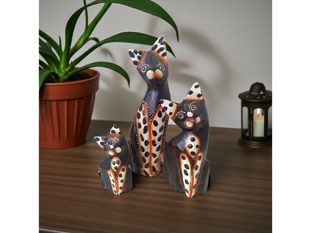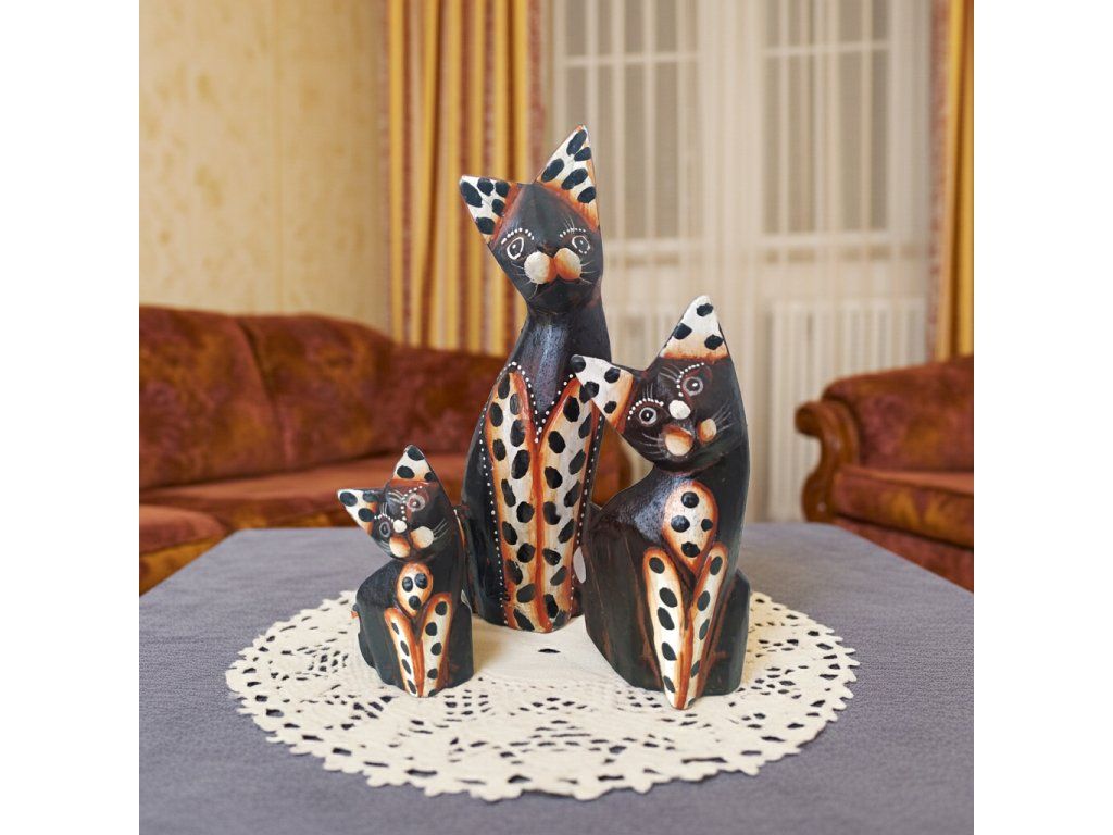 Kočka 3 x Socha Sada 4 Dřevo 22cm