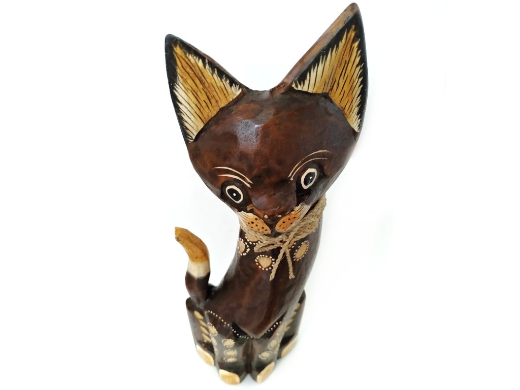 Krásná Dřevěná ručně řezbovaná socha Kočka.
