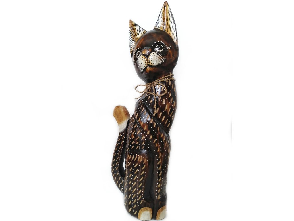 Krásná Větší dřevěná ručně řezbovaná socha Kočka.