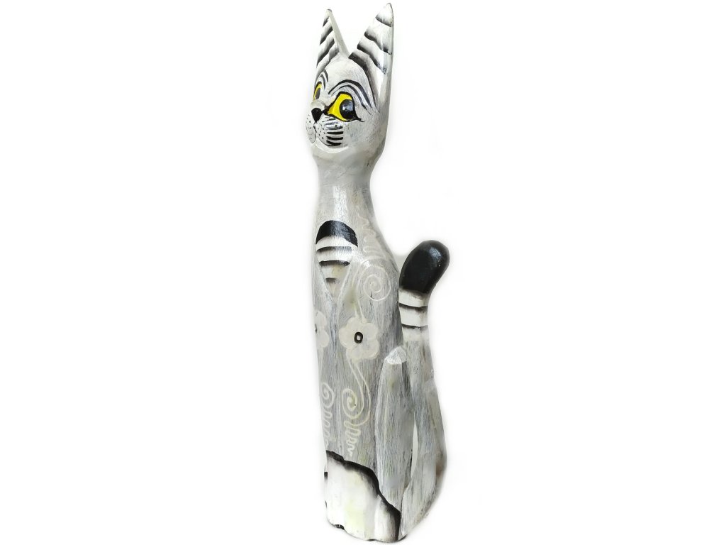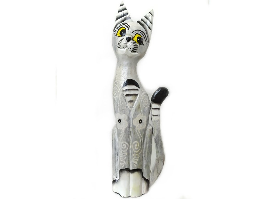 Krásná větší Dřevěná ručně řezbovaná socha Kočka.