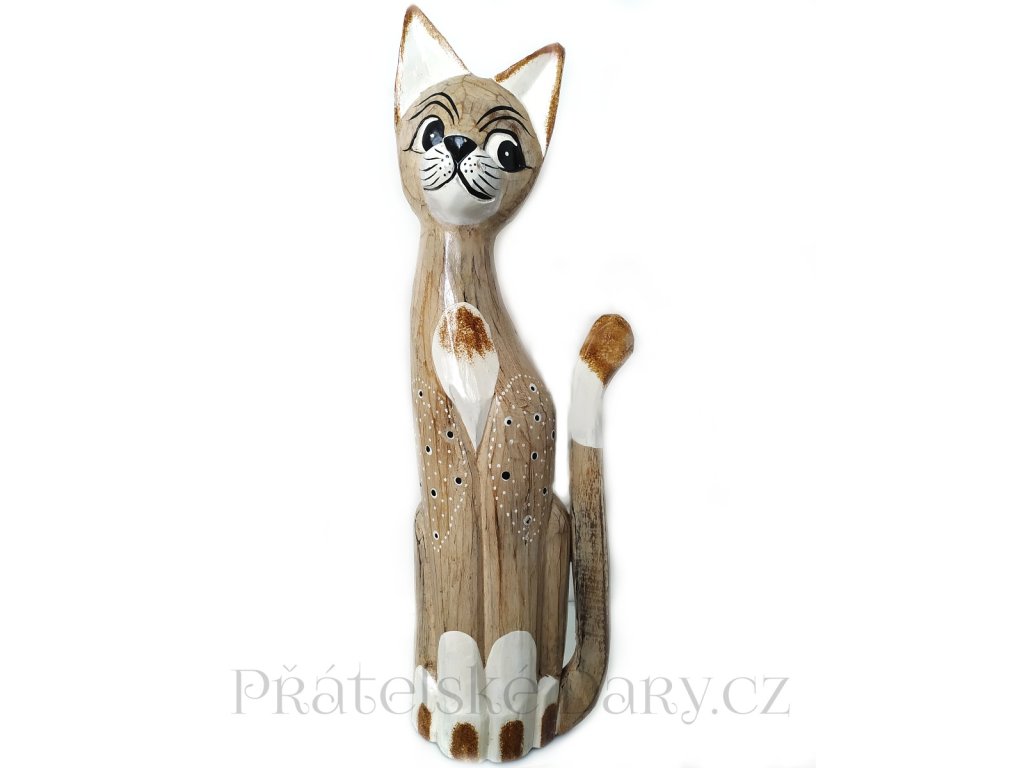 Krásná Větší dřevěná ručně řezbovaná socha Kočka.