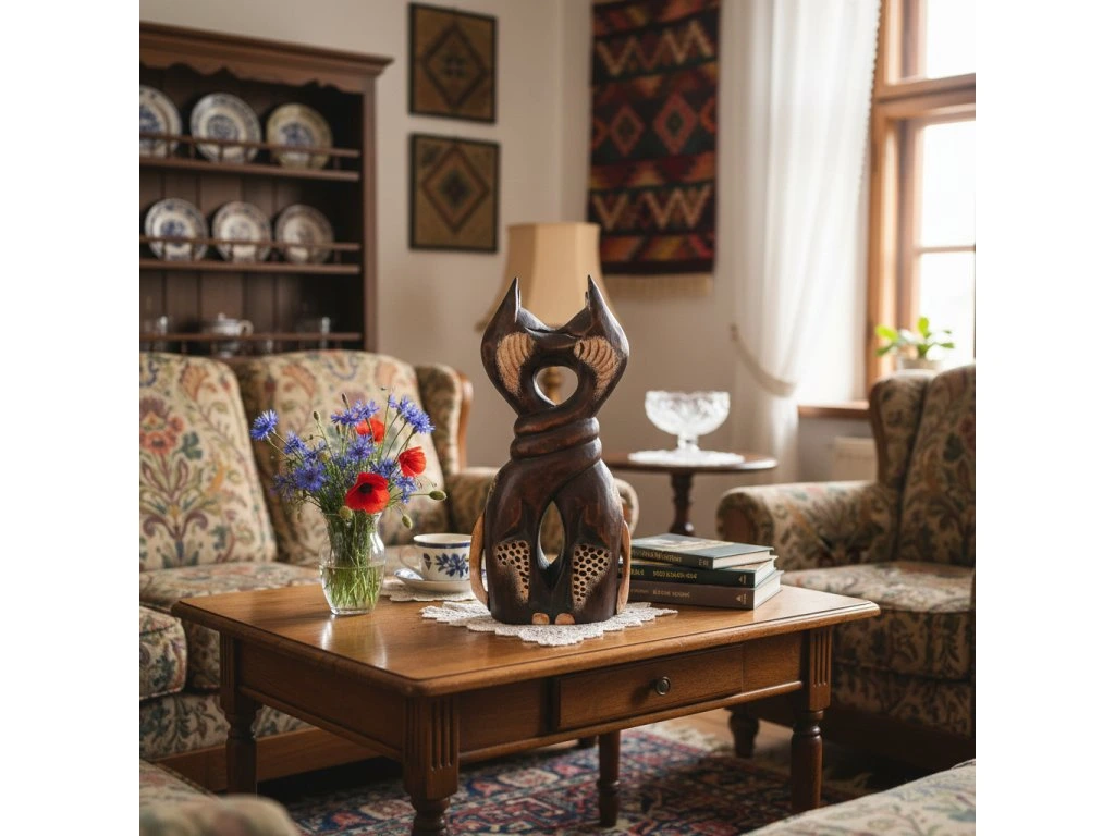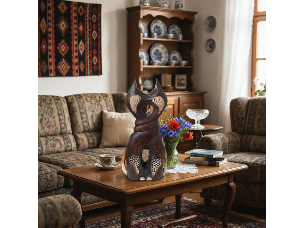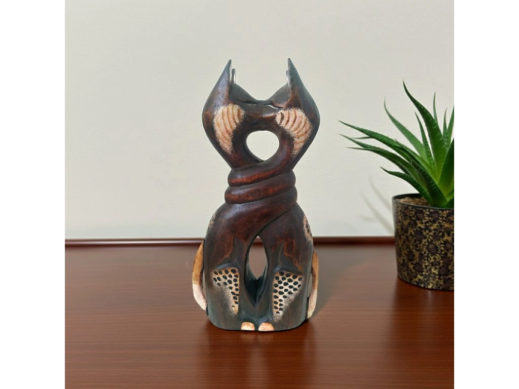 Kočka socha 2 kočky / Dřevo 31 cm