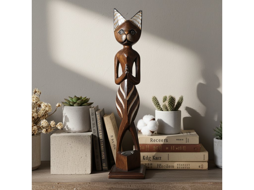 Kočka socha modelka / Dřevo 60 cm