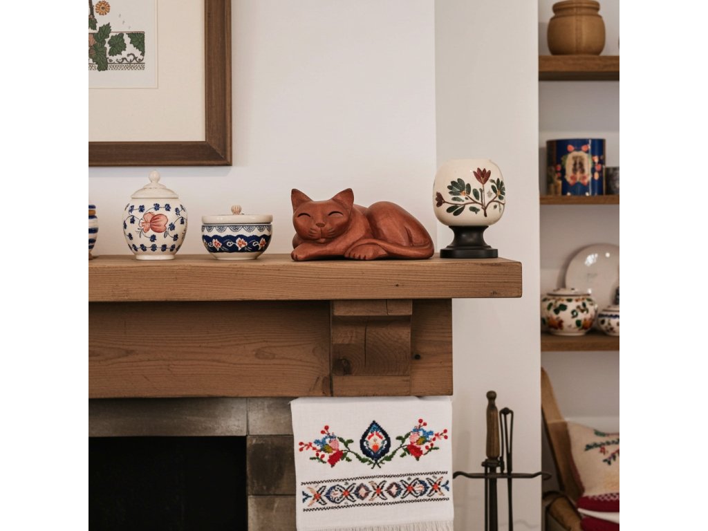 Krásná dřevěná ručně řezbovaná soška Kočky.