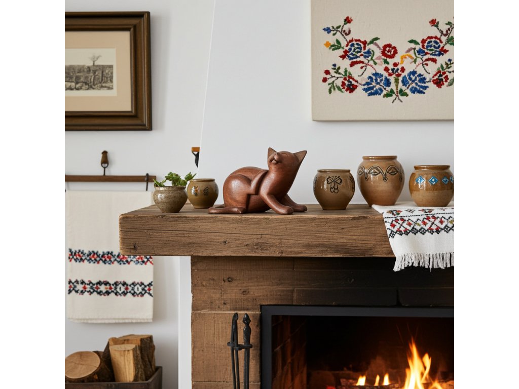 Krásná dřevěná ručně řezbovaná soška Kočky.