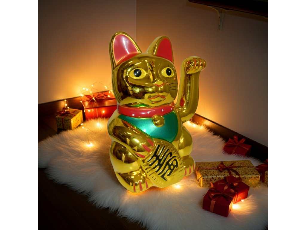 Krásná větší Kočka Feng Shui zvaná Maneki Neko Zlatá