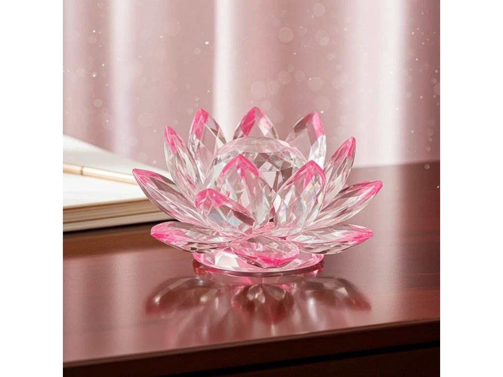 Rozkvetlý lotos je v tradici Feng Shui (a nejen v ní) symbolem čistoty, skromnosti, laskavosti a dokonalosti. Představuje lásku, plodnost, moudrost a ženskou krásu. Tento nádherný skleněný lotosový květ působí jako harmonizační prvek feng shui. Umístěte jej kamkoliv do místnosti, nejlépe tak, aby na něj dopadaly paprsky slunce. Paprsky budou prozařovat čiré listy lotosu a zároveň se odrážet od skleněných vybroušených plošek. Lotos patří nejen mezi buddhistické a taoistické symboly, lotos jako symbol znaly všechny starověké kultury světa. Lotosový květ odkazuje na techniku pro probuzení duše člověka.
