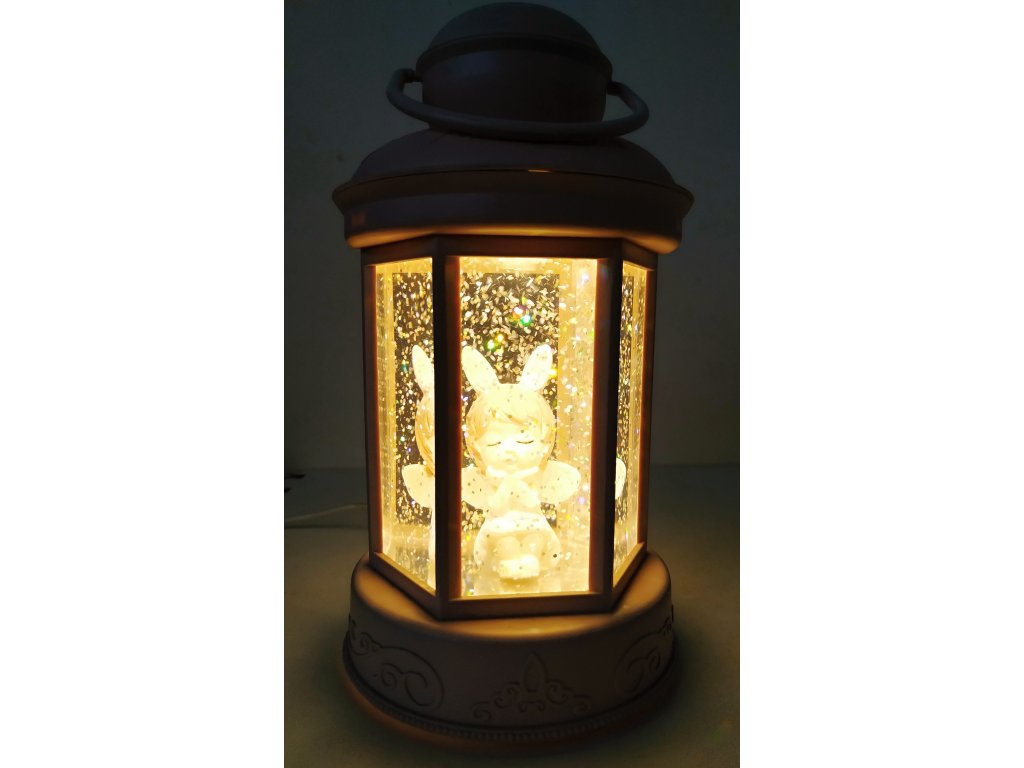 Lucerna s LED světlem a designovou figurkou. Uvnitř spousta barevných třpitek. Lucerna - Hrající Melodii