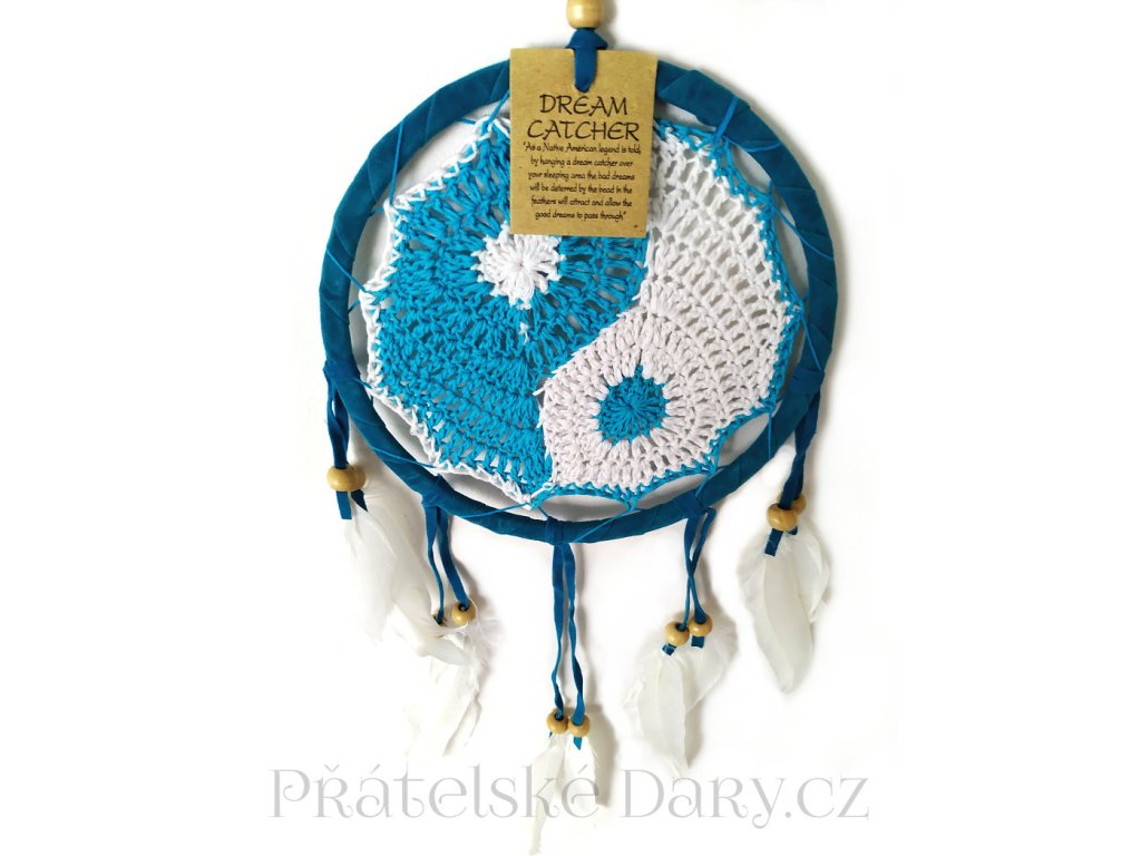 Originální ručně vyráběný Lapač zlých Snů s motivem Jing a Jang.