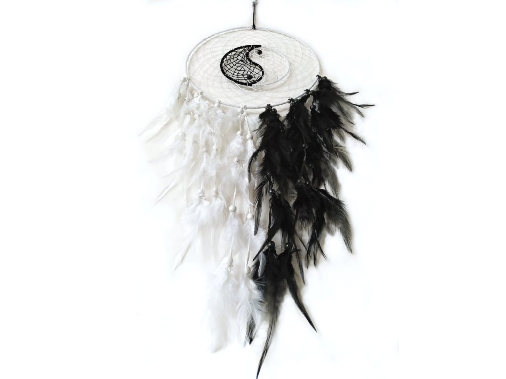 Originální ručně vyráběný Lapač zlých Snů s motivem Jin a Jang.