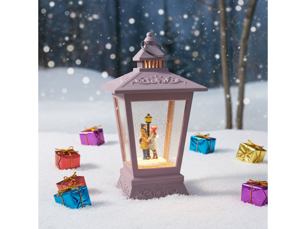 Lucerna s LED světlem a designovou figurkou. Uvnitř sposta balevných třpitek. Lucerna - Hrající Melodii