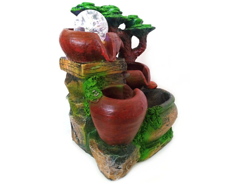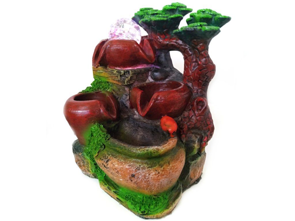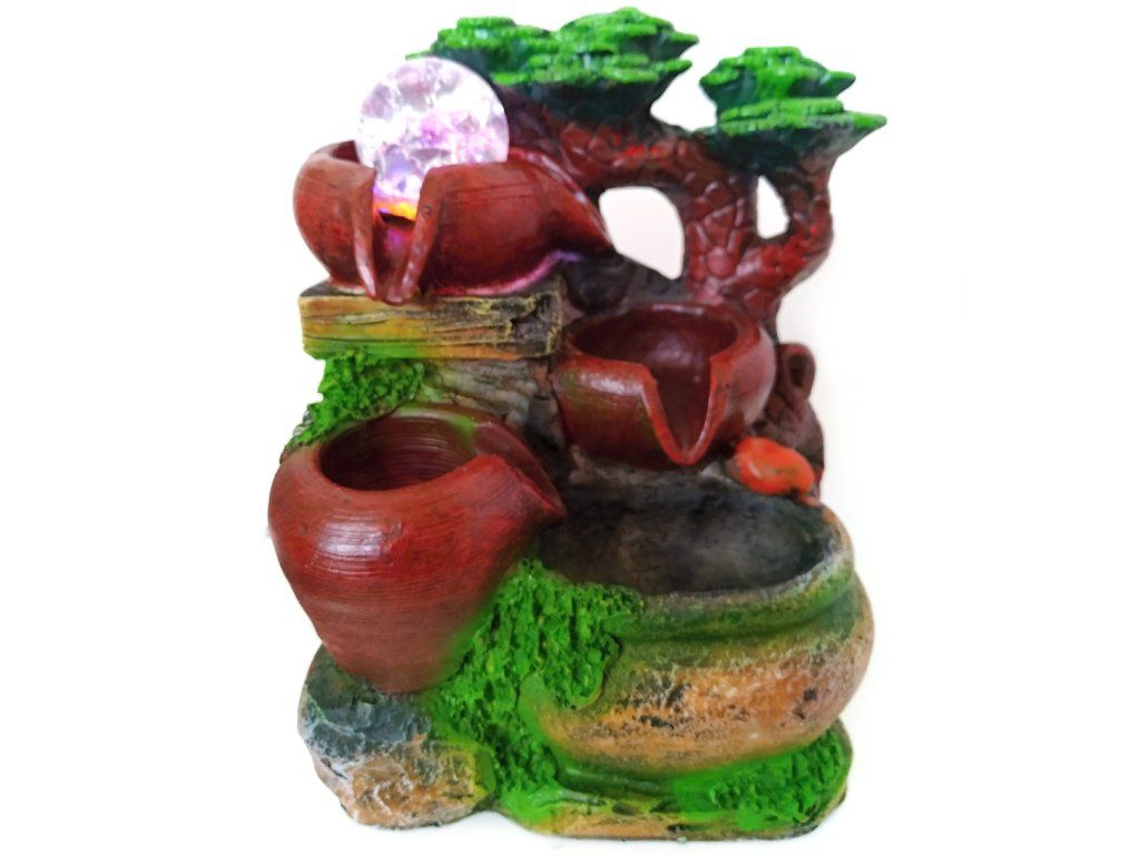 Fontána s uzavřeným oběhem vody. Proud vody přetéká postupně z jednotlivých pater - Džbánků. Zvlhčuje vzduch a přispívá k celkové relaxaci. Napájení 220V.