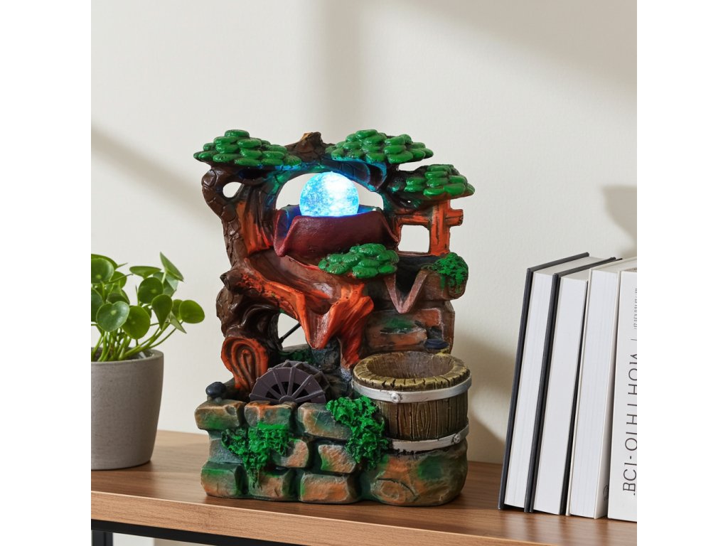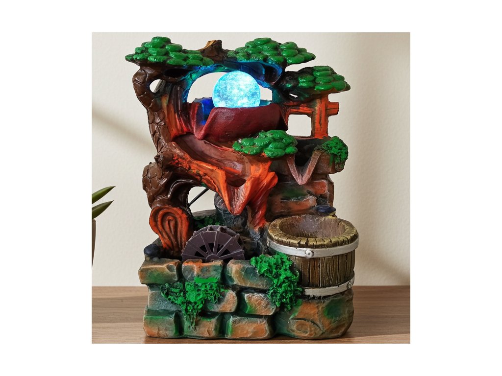 Fontána s uzavřeným oběhem vody. Proud vody přetéká postupně z jednotlivých pater - Džbánků. Zvlhčuje vzduch a přispívá k celkové relaxaci. Napájení 220V.