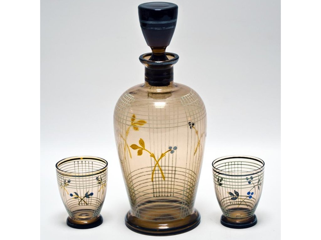 Retro karfa na whisky se skleněným uzávěrem a 1x panákem.