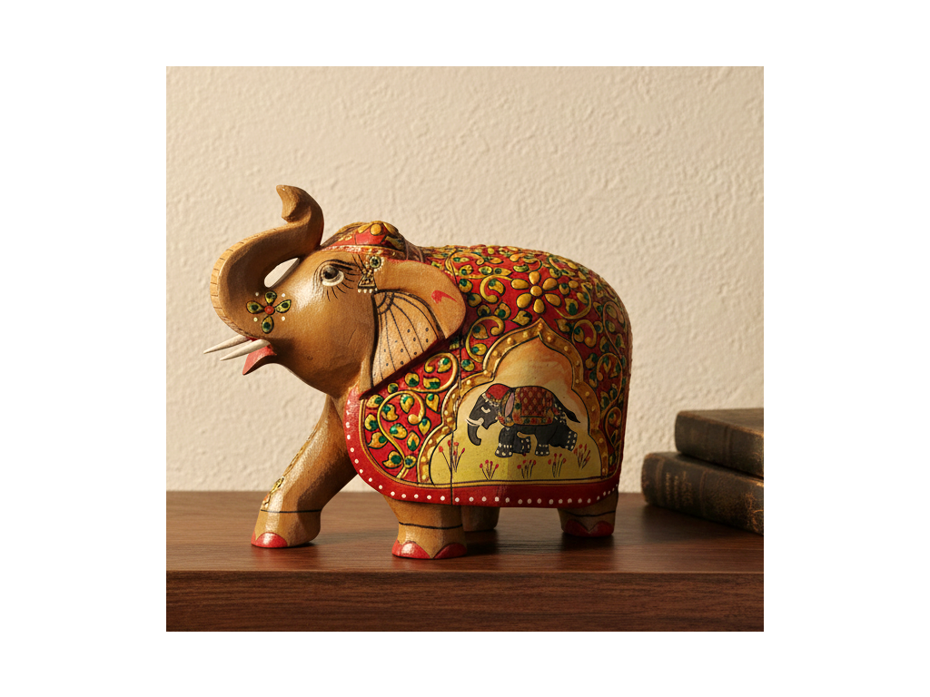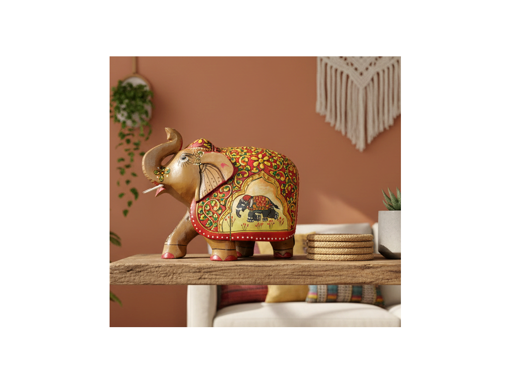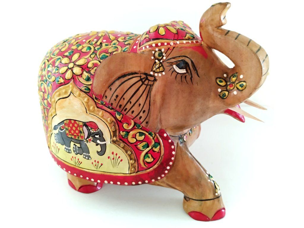Krásná Řezbovaná Orient Ručně zdobená Soška Slon.