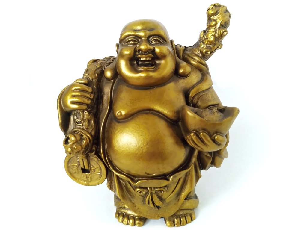 Smějící se Buddha s ingotem nad hlavou je považován za symbol hojnosti, bohatství, úspěchu, přináší dobré zprávy, šťastné příležitosti a události.