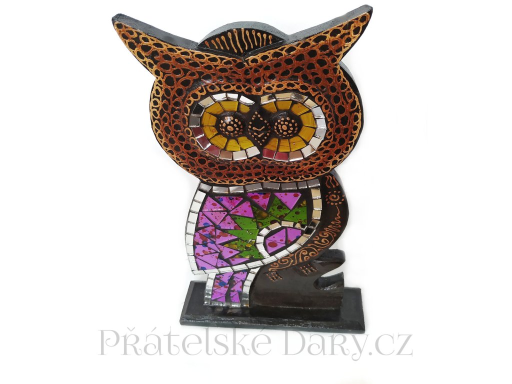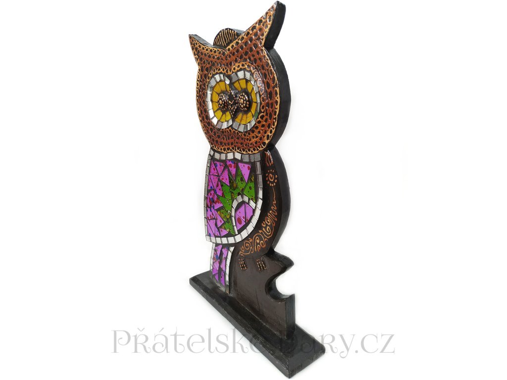 Sova zdobená socha mozaika / Dřevo 32 cm