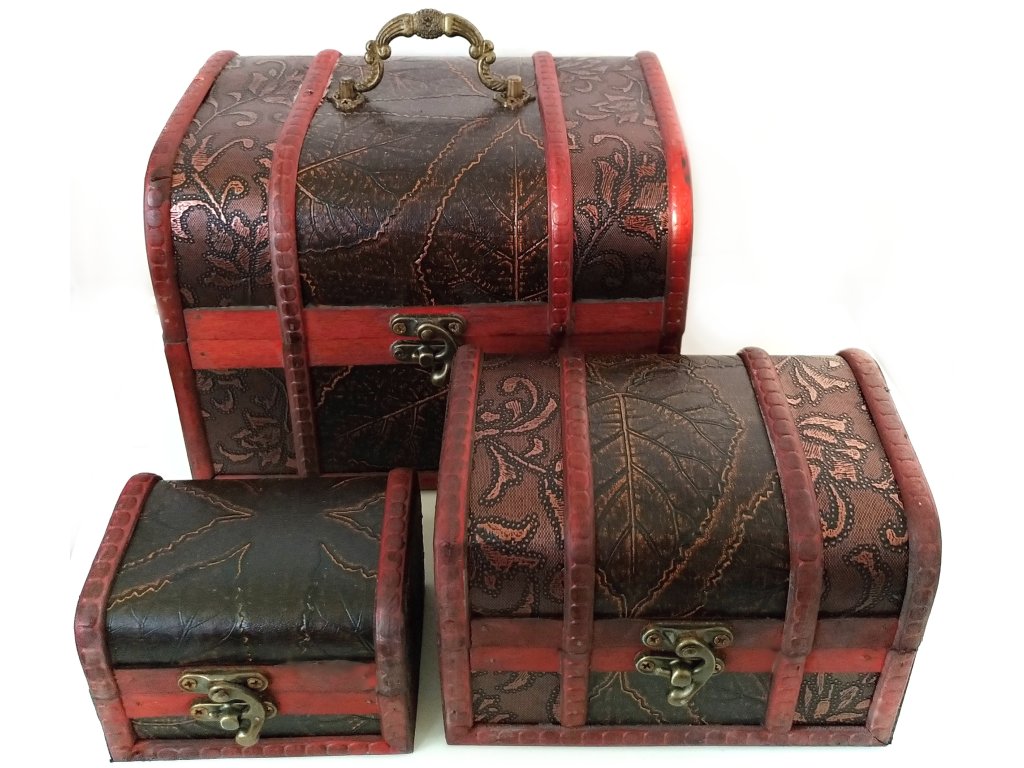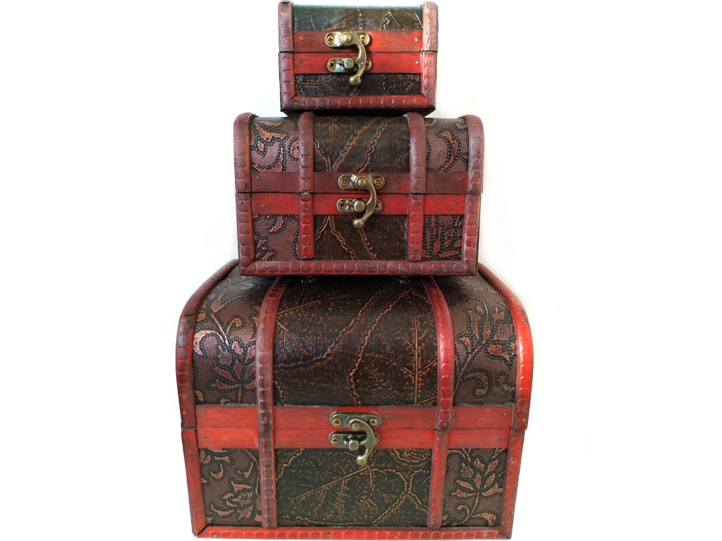 Krásný, ručně vyráběný set - 3 x Truhla - šperkovnice, bohatě zdobené. Vhodné na uskladnění věcí.