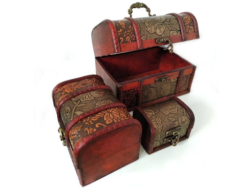 Krásný, ručně vyráběný set - 3 x Truhla - šperkovnice, bohatě zdobené. Vhodné na uskladnění věcí.