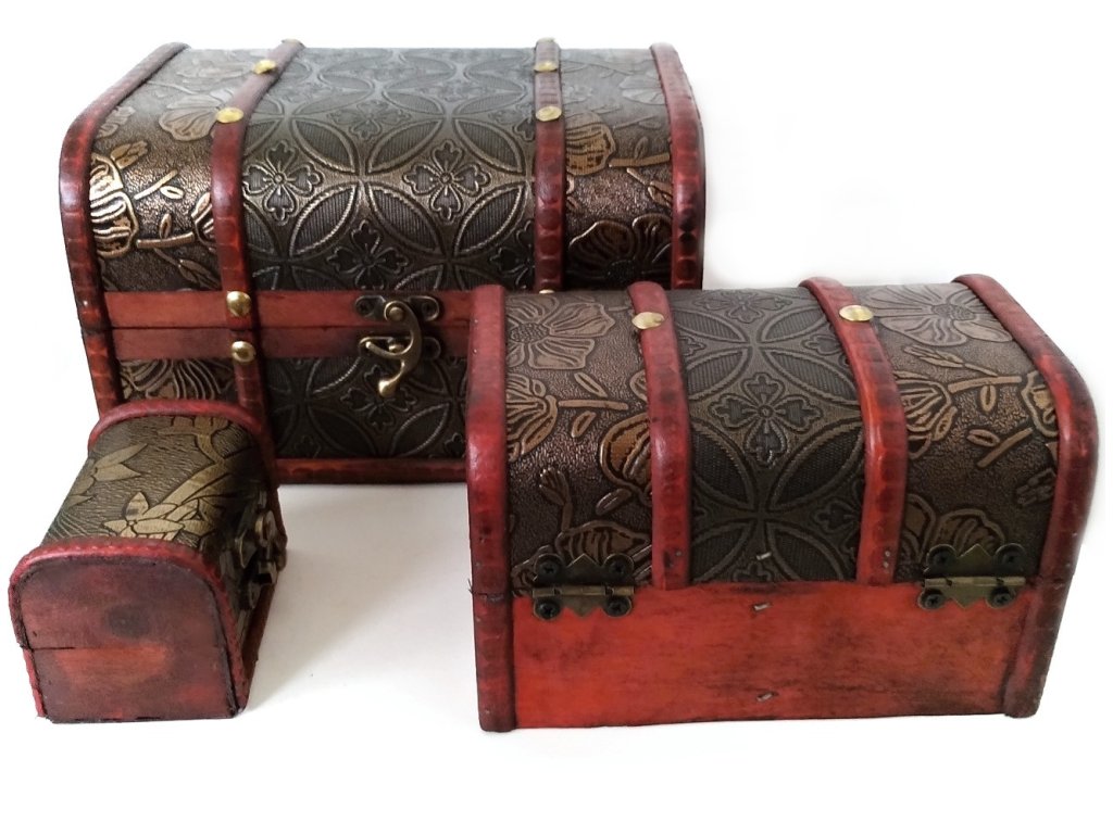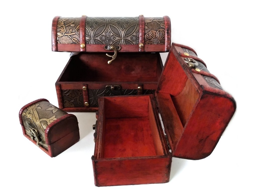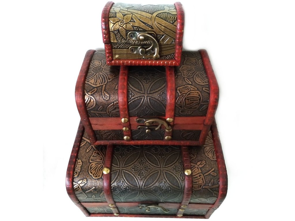 Krásný, ručně vyráběný set - 3 x Truhla - šperkovnice, bohatě zdobené. Vhodné na uskladnění věcí.