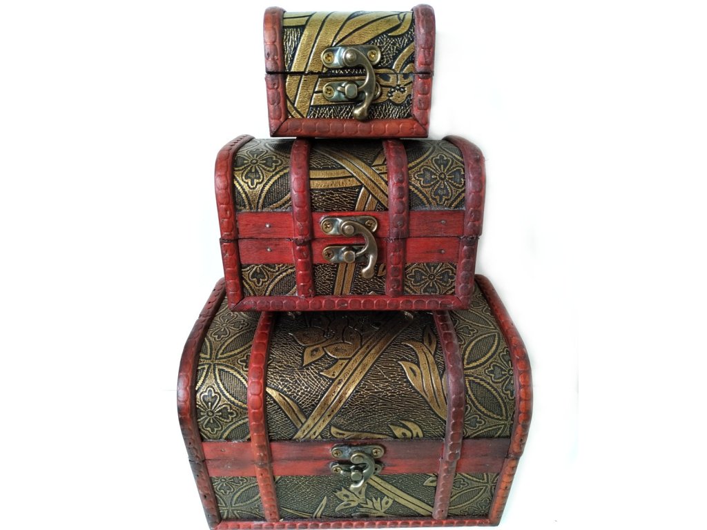 Krásný, ručně vyráběný set - 3 x Truhla - šperkovnice, bohatě zdobené. Vhodné na uskladnění věcí.